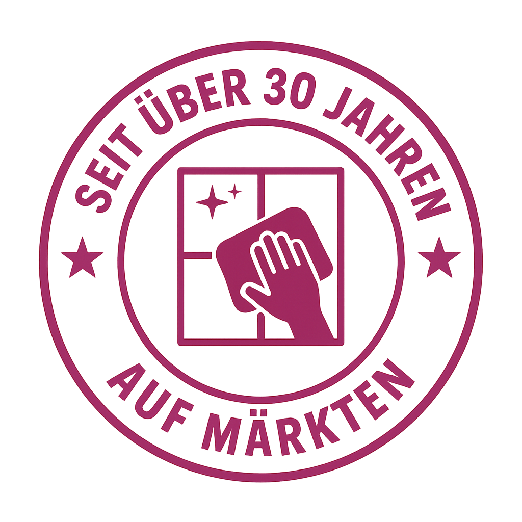 Die Reinigung erfolgt ausschließlich mit Wasser. Die spezielle Materialstruktur nimmt Schmutz und Fett effektiv auf und sorgt für streifenarme Sauberkeit auf glatten Oberflächen.